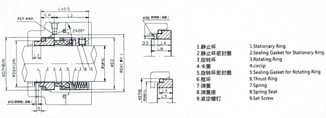為小彈簧結構,非平衡型密封,軸向尺寸短,密封端面受壓均勻。